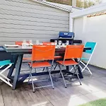 Le Lounge, Maison Avec Terrasse Proche Plage Les Sables-dʼOlonne med 2 sovrum, som ligger ungefär 15 minuter till fots från Quartier de l'Ile de Penotte, erbjuder gästerna en terrass där de kan koppla av.